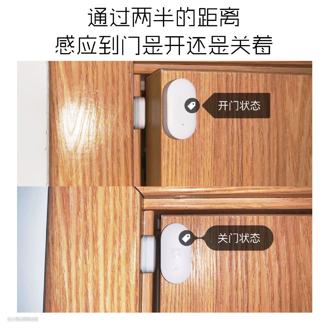 5.门磁本身体积很小,所以大家可以根据自家的实际情况随便粘贴安装(门磁出厂自带双面胶),联动几乎所有想控制的智能设备,大家发挥想象力就能创造出无数种自动化智能场景。