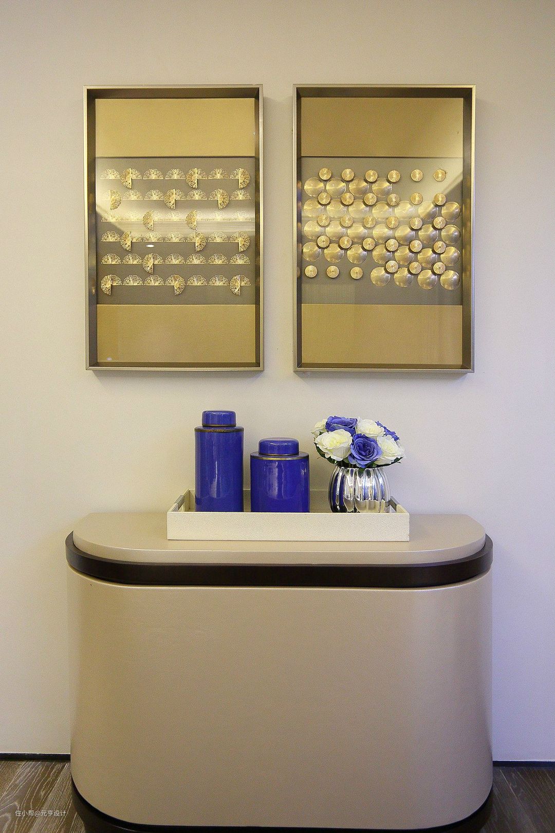 您可别小瞧了那一只小花瓶或一束干树枝,少了它们,您的玄关强能就缺少了一份灵气和趣味。一幅上品的油画,一帧精心拍摄的照片,或是一盆细心呵护的君子兰,都能从不同角度体现您的学识、品位、修养。不过,您得把握一个原则:少而精,重在点题。