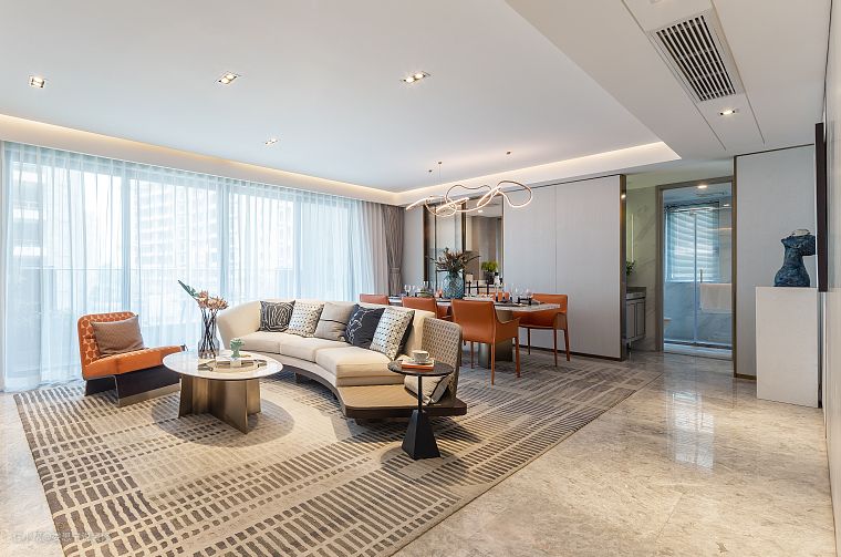 对于大多数三房两厅45平米左右的客餐厅来说,800*800的地砖已经完全足够了。相反卫生间墙面和厨房的挡油板用大砖处理才是关键。而省下来的装修开支完全可以安装一个风管机。