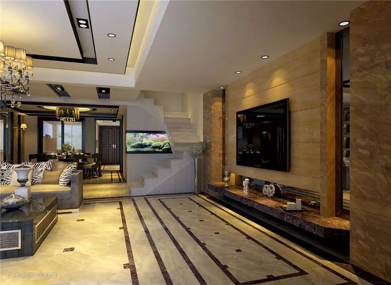 客厅的设计,奢华中透着和谐自然。整体给人的感觉很饱满,这是因为设计师巧妙的灯光运用。