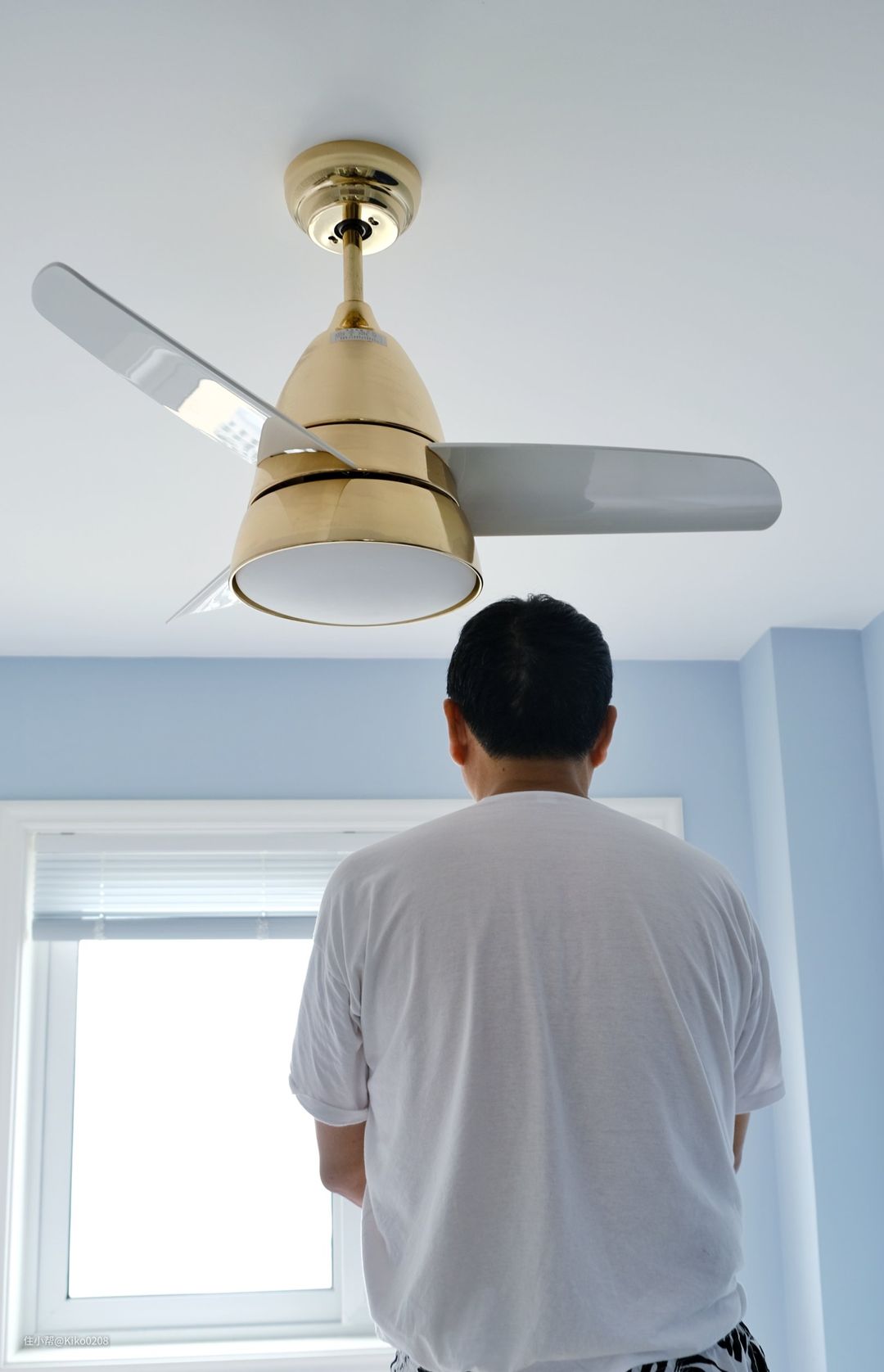 缺点:装完才发现,因为榻榻米有抬高,吊扇灯叶片裸露,购买时候确实忽略了榻榻米的抬高高度,你们看我爸170高,站到榻榻米上,就这效果了,更何况183的家属了,我家属说我买这个图谋不轨,所以说还是比较危险的。