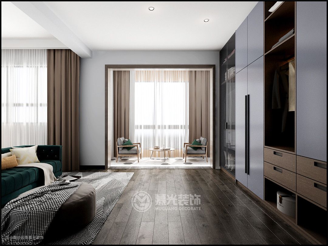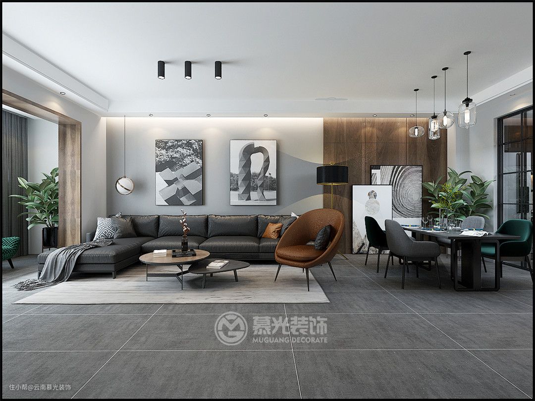 本案业主想要简洁大方的风格,非常喜欢木饰面的质感与清爽,给予人温暖、气质,设计师选用高级灰与木色设色,墨绿色点缀,最终呈现了业主理想中的家。