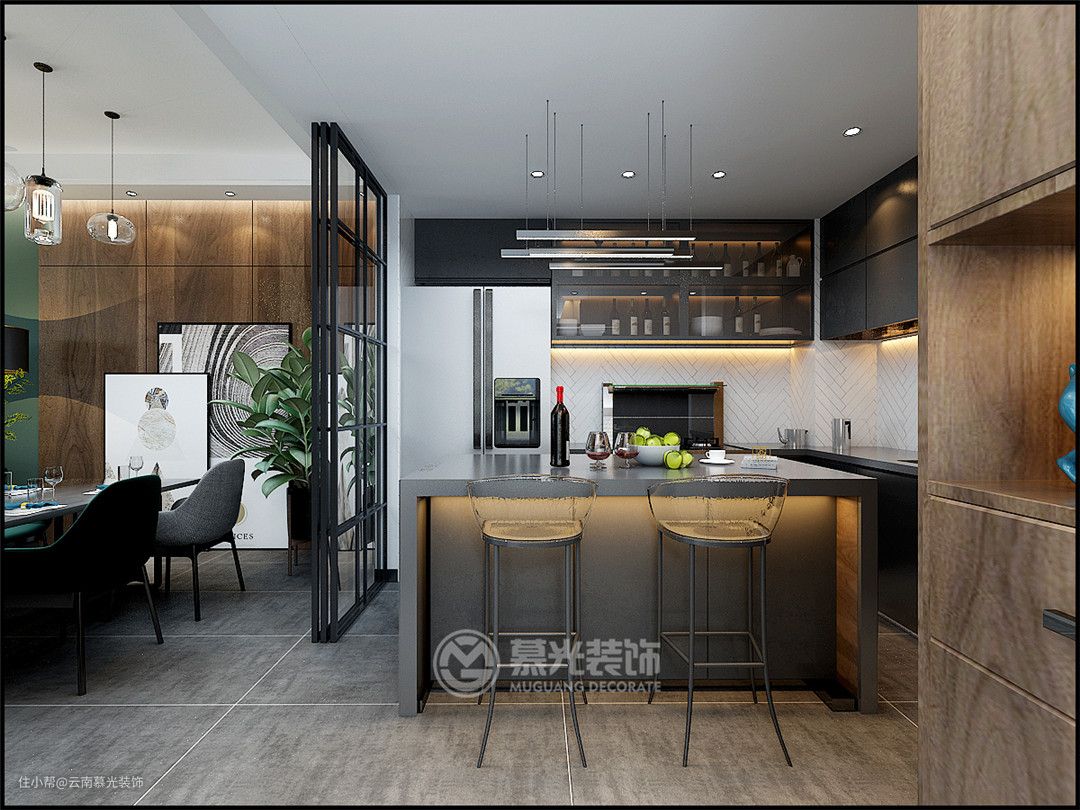 厨房的照明由吊灯+射灯+灯带组合展现,给烹饪时光带来源源不断的趣味与温暖。岛台设计简约大气,完善厨房功能,整个空间更富有烟火气息。