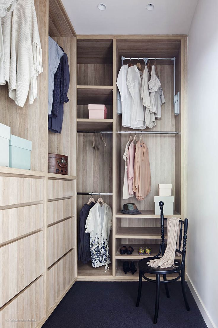 如果卧室面积足够大,那就可以借助角落来打造简单的L型衣帽间,简单而又实用。