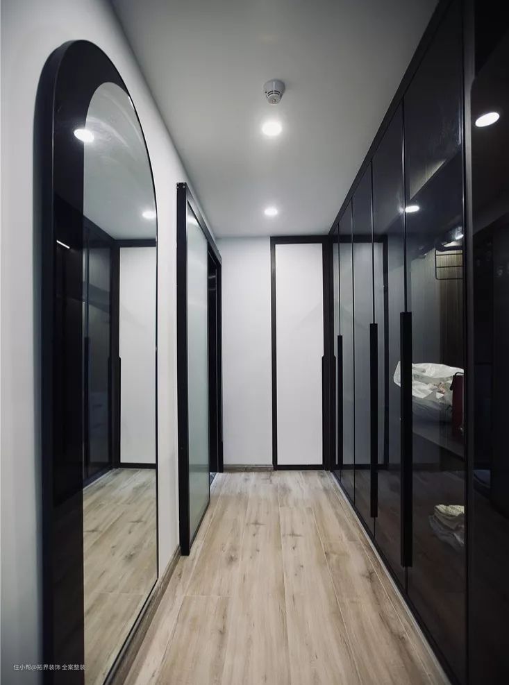 如果你家的走道比较宽敞而且觉得很空白,那就不妨将走到两边设计成衣帽间,也可以搭配收纳柜一起打造,但是唯一的缺点就是人走来走去的容易窥见一些隐私。