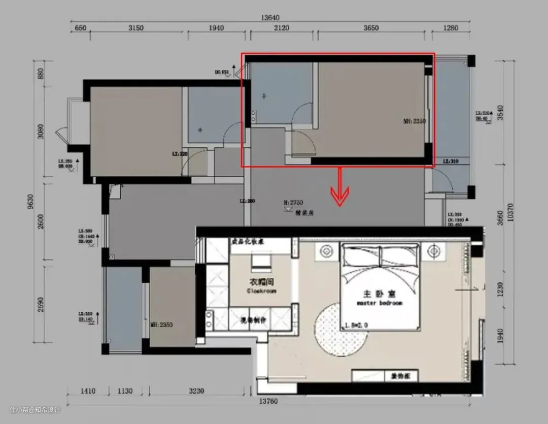 去掉一个卫生间可以直接扩大原来卧室的面积,让卧室住的更宽敞舒适。女主人衣物比较多的话可以考虑做衣帽间,具体做法也有很多种,大家感兴趣可以单独再聊。