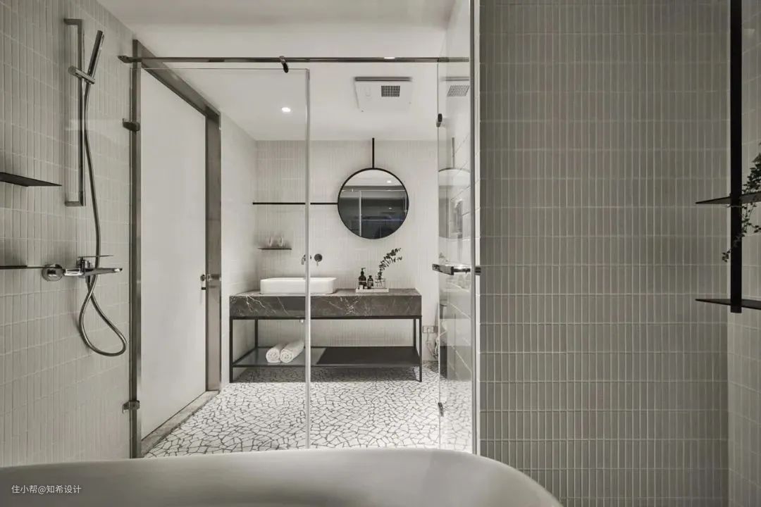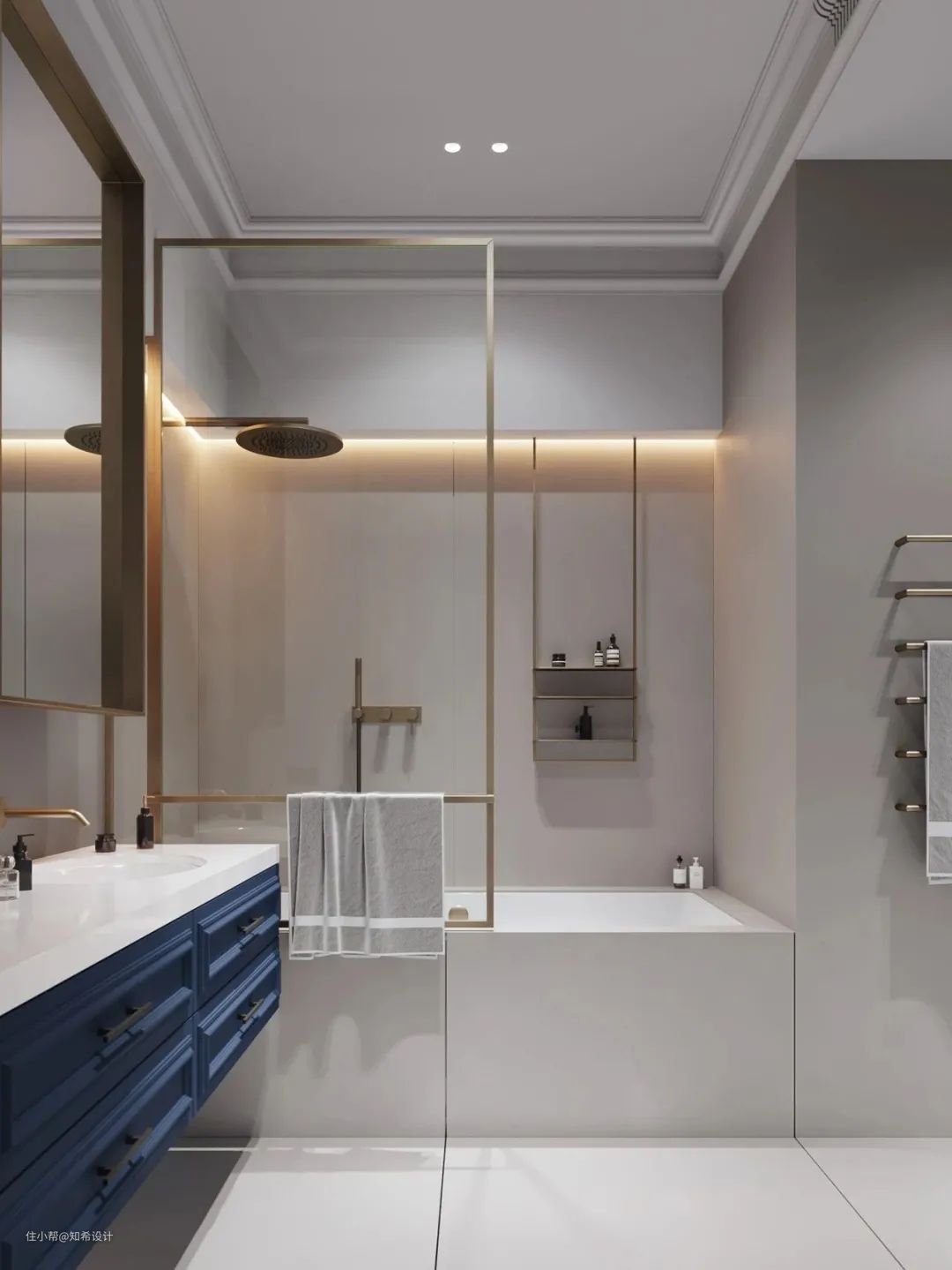 很多房子受户型局限卫生间偏小,没有办法做到真正的三分离,假如两个卫生间合并就可以实现三分离,甚至四分离,将台盆区+马桶间+淋浴区(或者浴缸区)完全分开,甚至做双洗手台设计,功能齐全方便使用也更人性化。