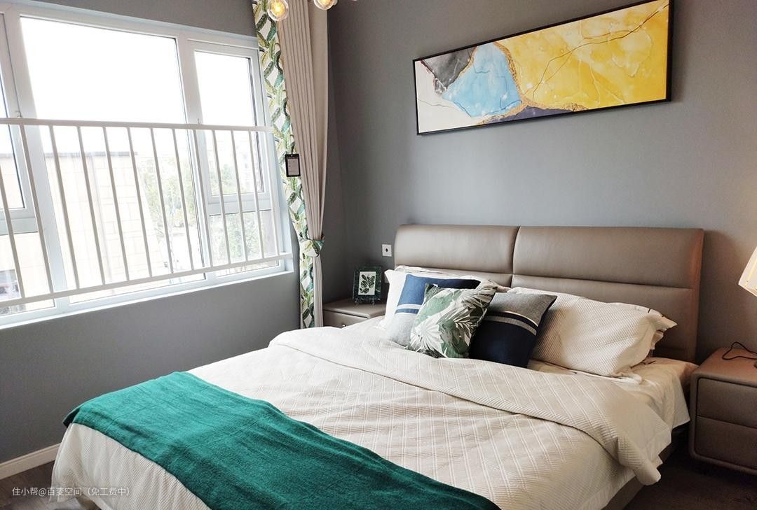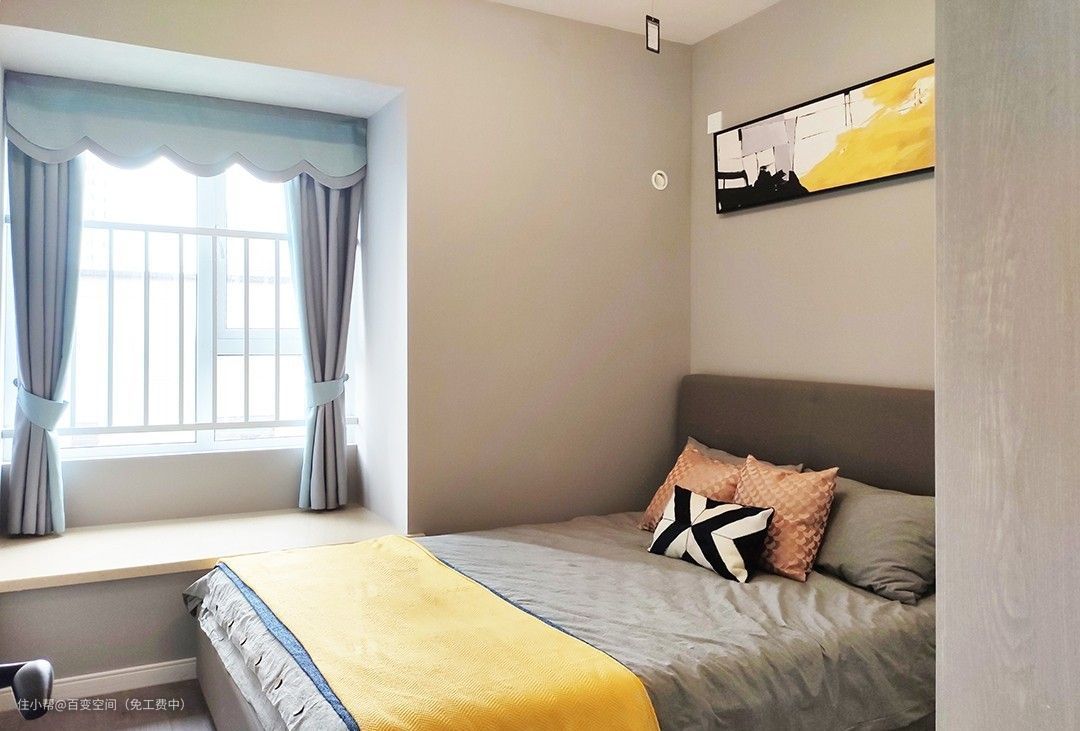 次卧设计简约舒适又大方,另外还带了一个飘窗,用来放松休闲也是极其不错的。