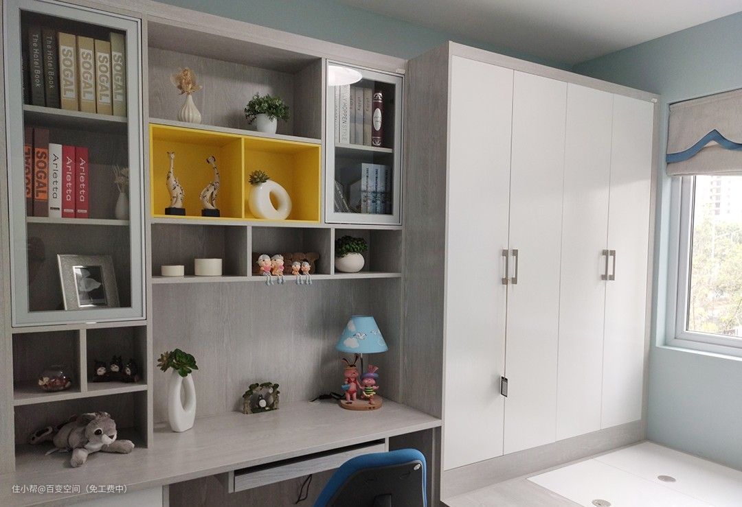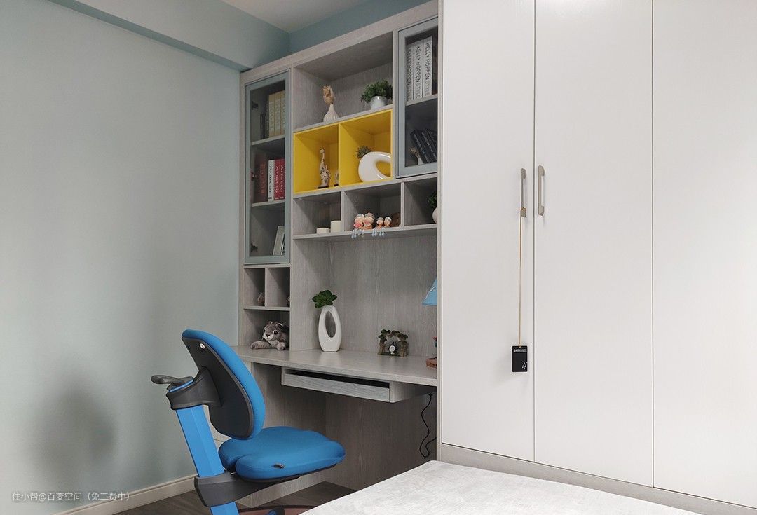 儿童房区域,面积虽然不大,但依然要兼具收纳、休息和学习于一体的需求,在这里定制了一个榻榻米地台床,这样也能将其设置成一体化的书柜,并释放出一定的空间作为工作区来使用。