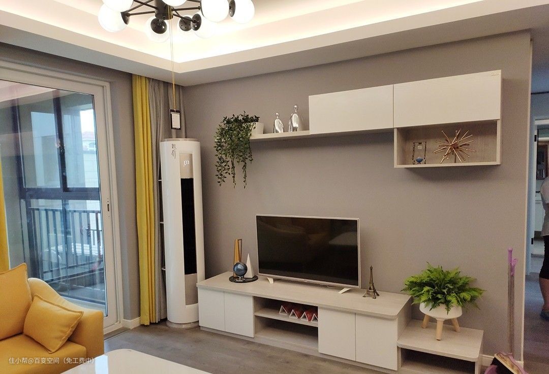 客厅电视墙与沙发墙相呼应,并直接安装上了壁柜,看起来实用又美观。落地式结构的电视柜,好处在于底部不用时常清洁了。另外,电视柜预留的开放式收纳区还能将插座给遮掩住,到时候还可以把电线以及路由器之类的东西直接收纳进去即可,让整个空间变得更加干净整洁。