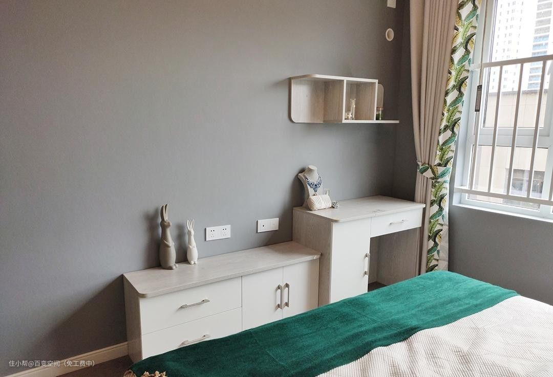 另外一个角度看,则是收纳日常生活物品的成品柜以及梳妆台,该有的功能一个都不少。