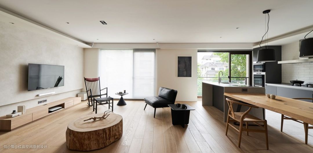这种的就是大开间短进深,采光面更大,整个起居室白天的采光和日照会更充沛。
