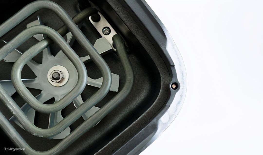 再看这款下出风式的空气炸锅,裸露的发热管和风机