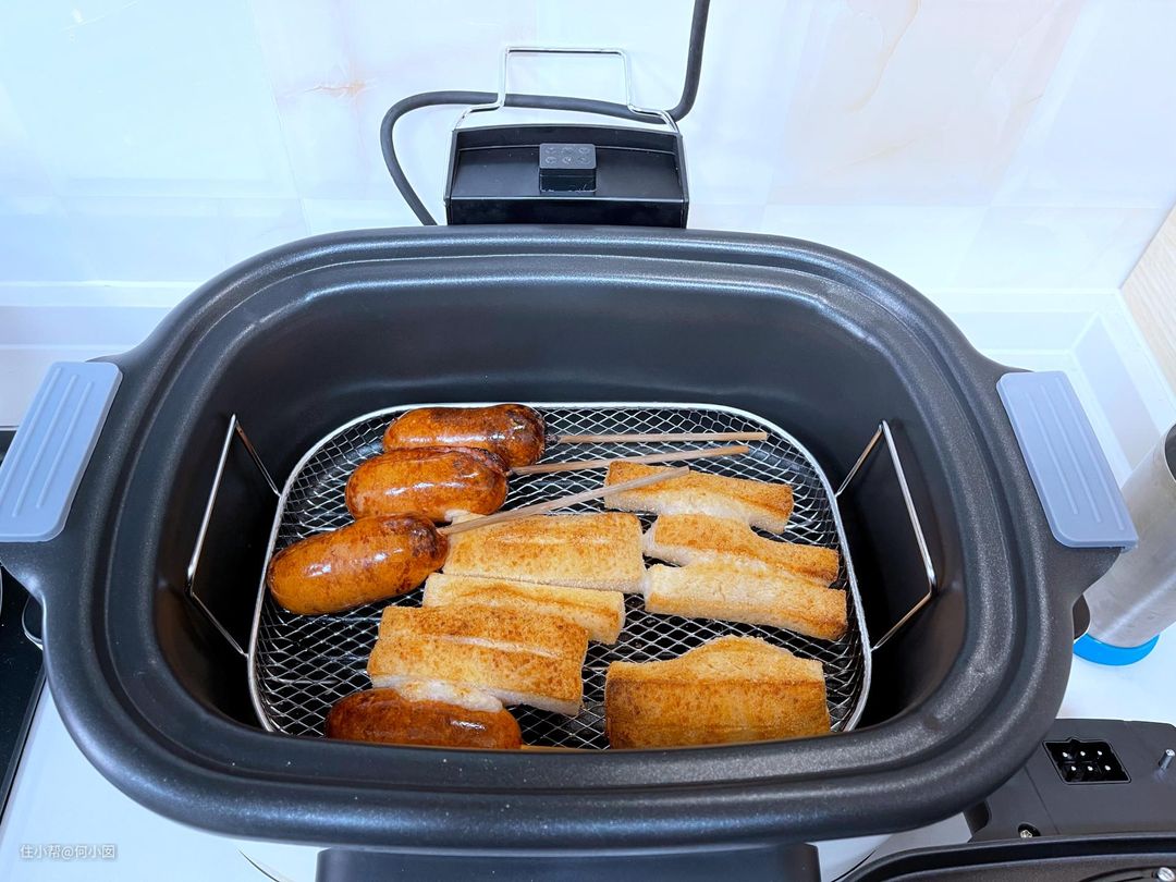 空气炸锅呢,负责翻热各种香肠、热狗、炸鱼丸、炸各种小吃,鸡米花、鸡排、薯条等等