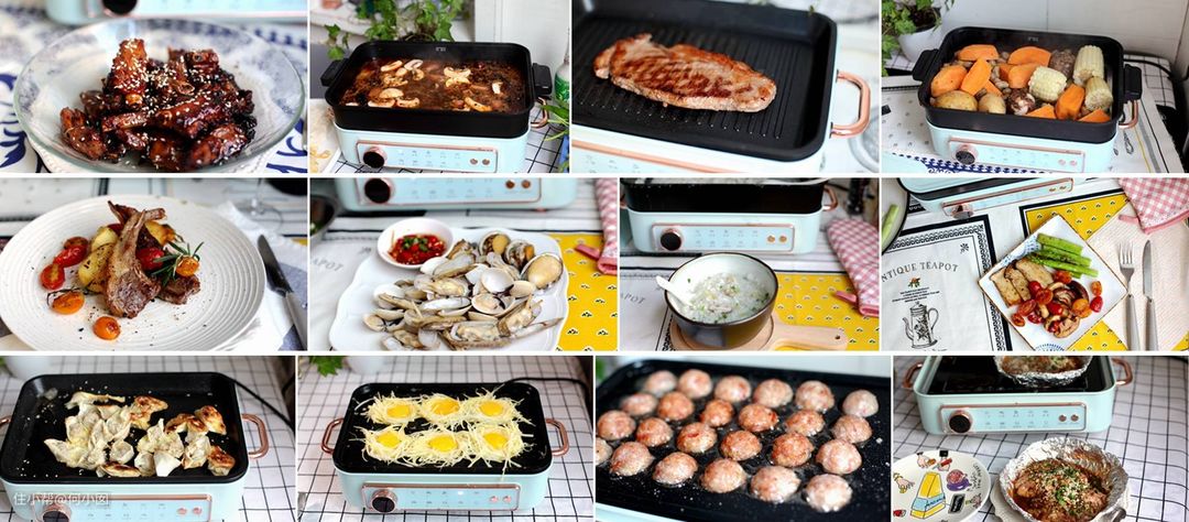 下图是我用法格的多功能锅做的糖醋排骨,煎牛排,煮火锅,蒸杂蔬,煎法式羊排,蒸海鲜,熬粥,煎蔬菜,煎饺还有鸟巢蛋、章鱼小丸子,还可以烤猪脑