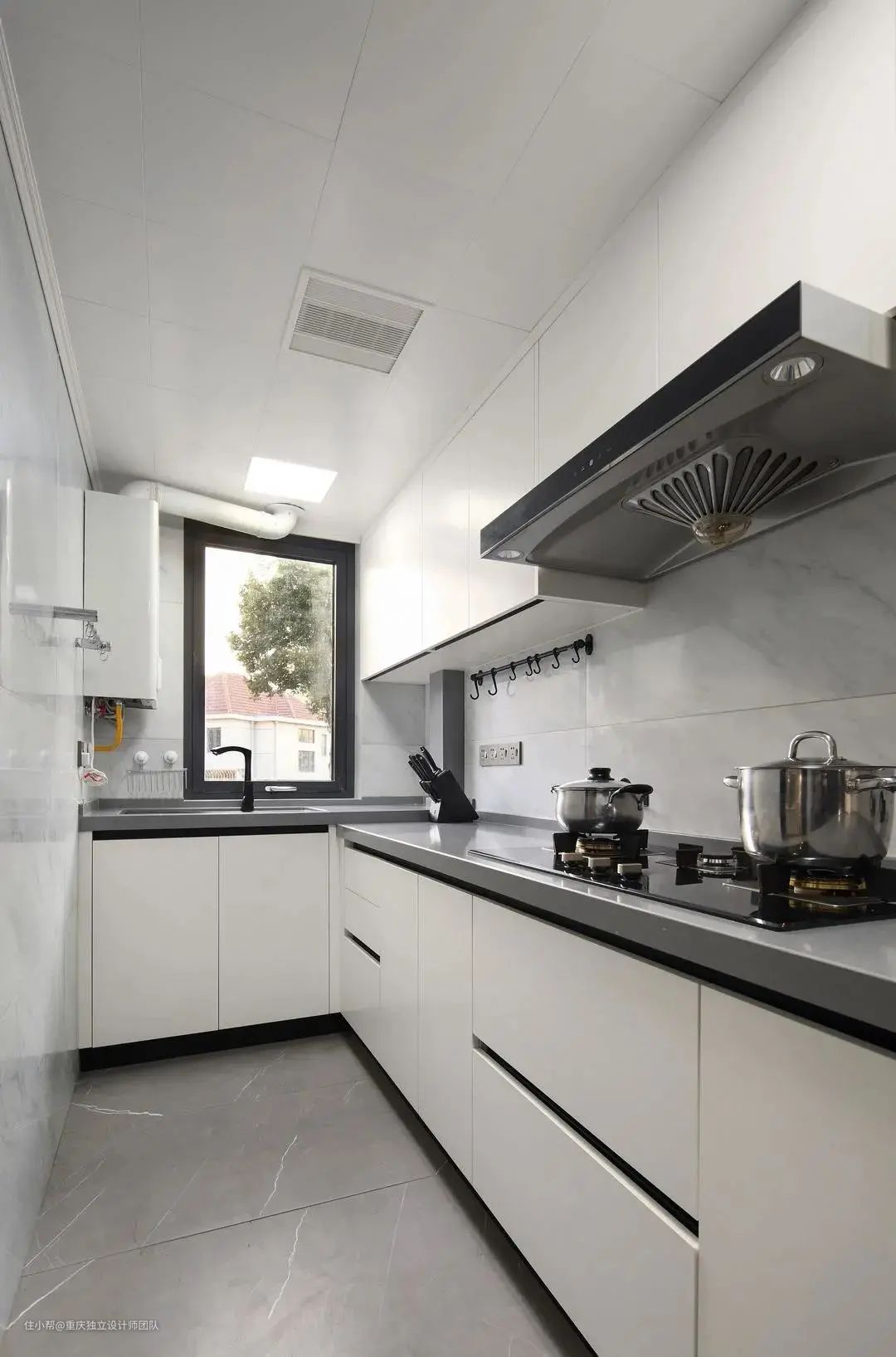 一字型呢适合空间小、户型狭长的厨房,水槽区→备菜区→烹饪区,厨房动线更合理、顺畅,使用也更加的方便。