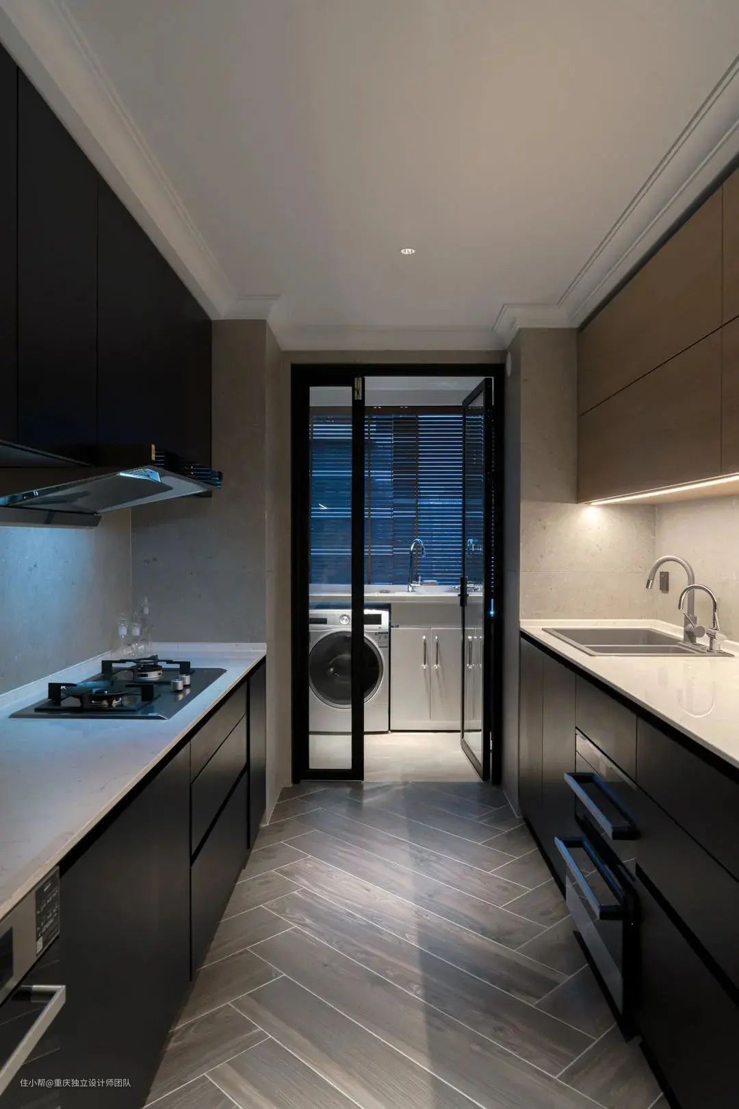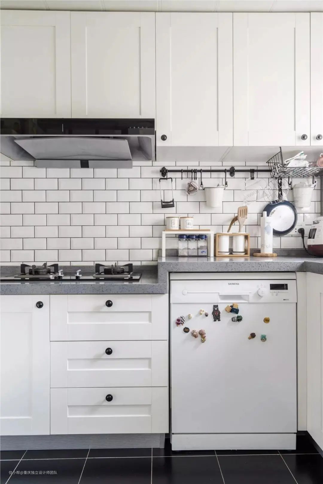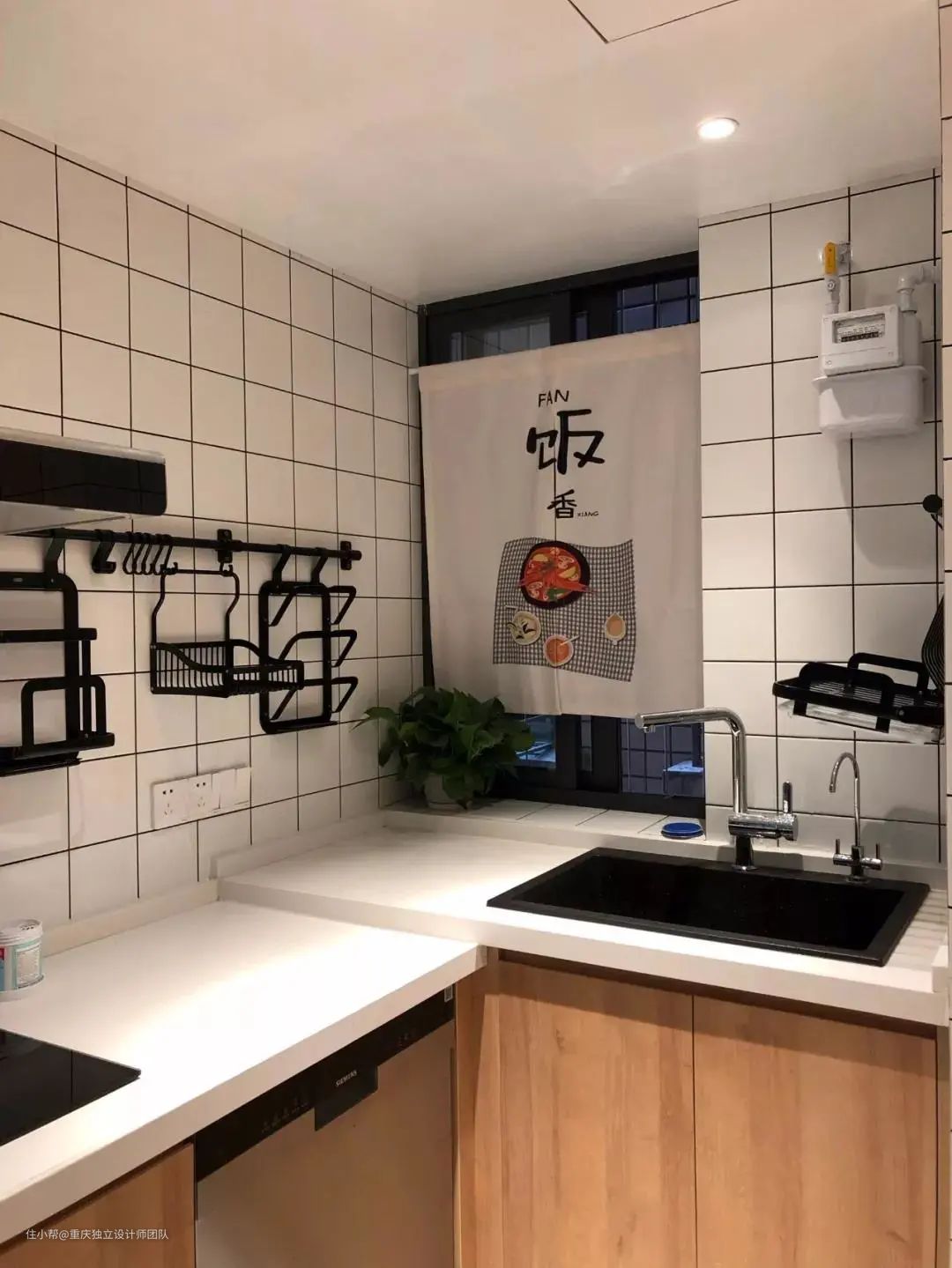 其实呢,L型厨房是打造高低台最好的户型!在转角处做高低的分割,下厨更轻松,水槽→备菜区→烹饪区,做好的饭菜就可以直接端上桌,动线更顺畅、合理~
