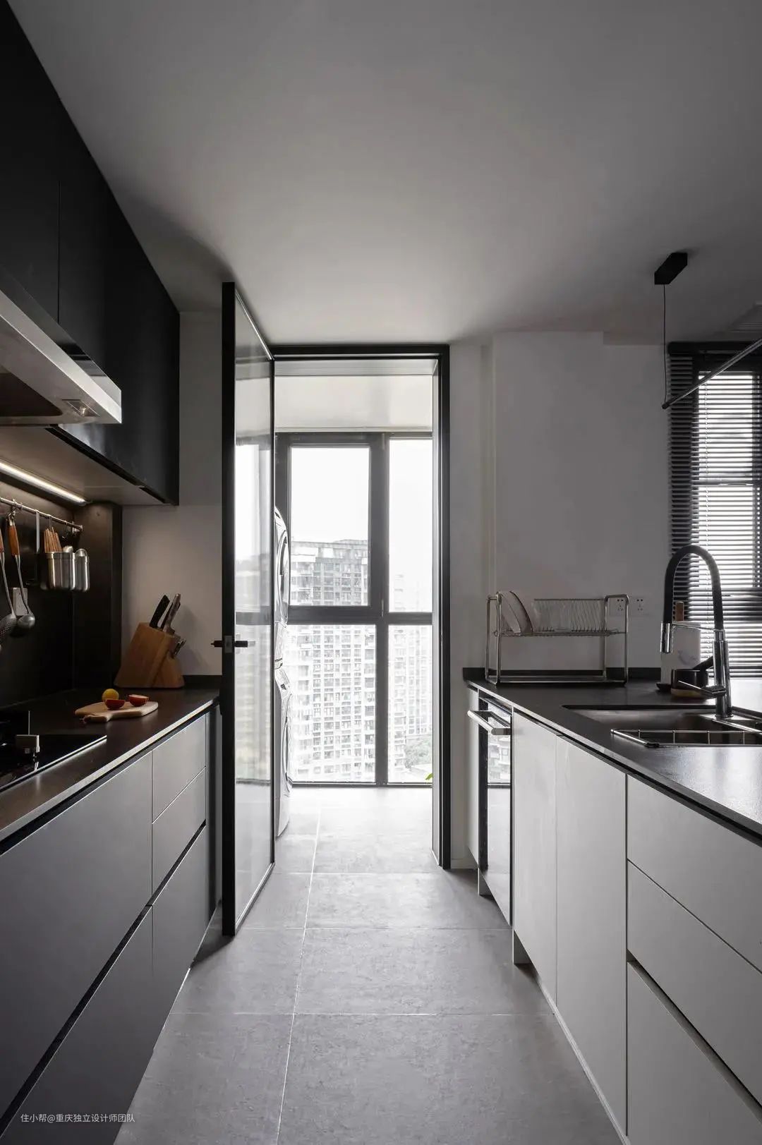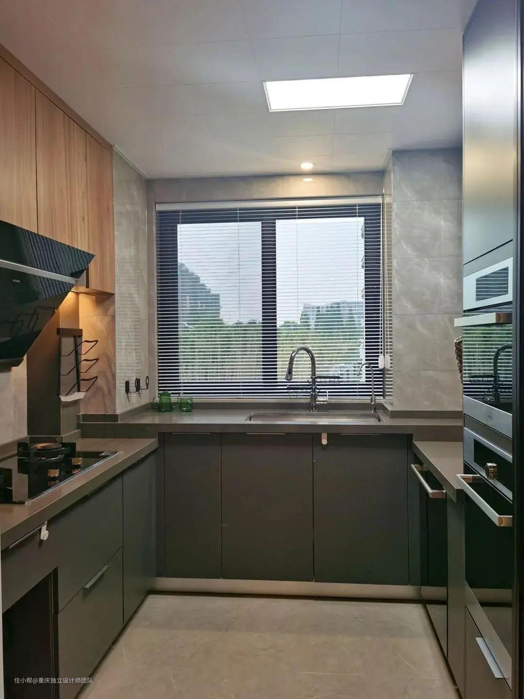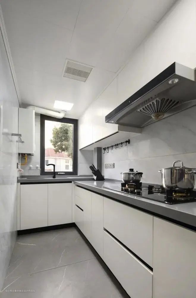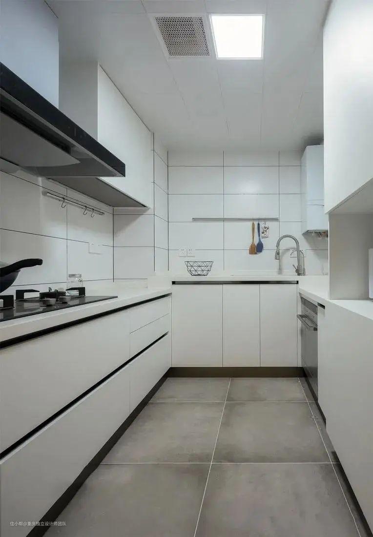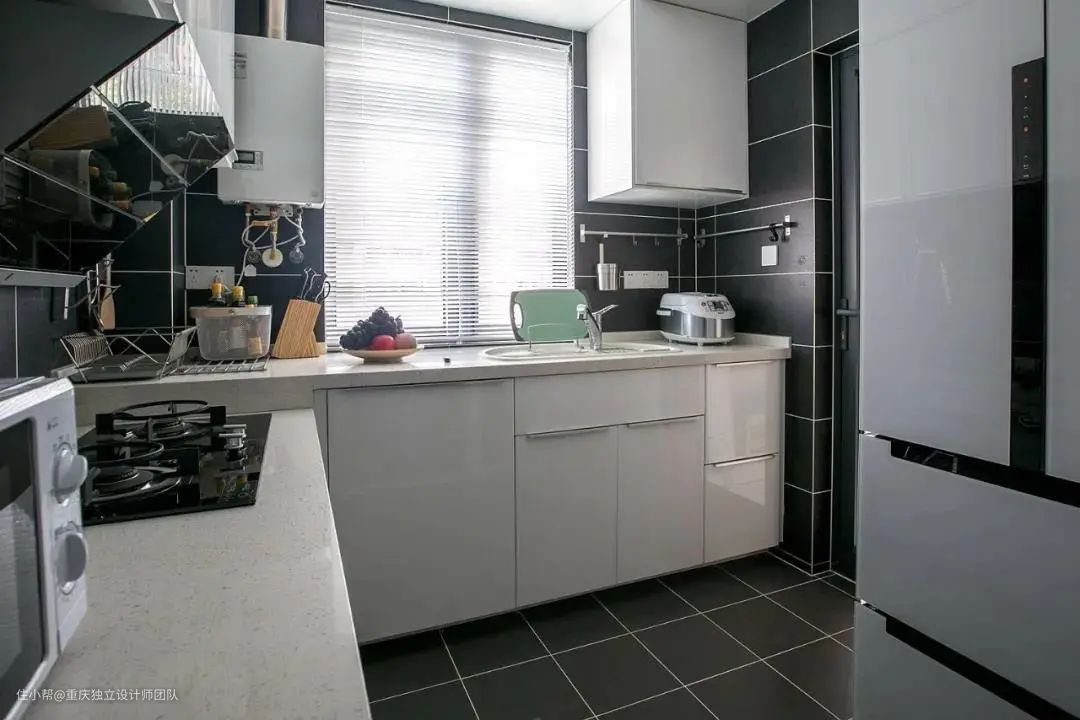 如果家里厨房是二字型的情况,就不建议做高低台,把水槽和灶台放置不同侧,并设计成两种高度,使用会更方便些~