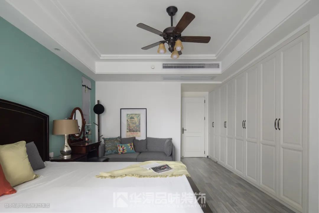 全部刷白并加上装饰画点缀的墙面,不容易过时,如果留有一两面墙不刷白,换成其他颜色/装修设计,会让你有意想不到的收获。