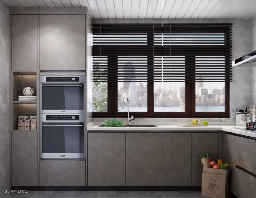 不同层次灰度的厨房是指深浅不同的灰色调,让厨房散发出低调的气息却充满层次感,更彰显品位。