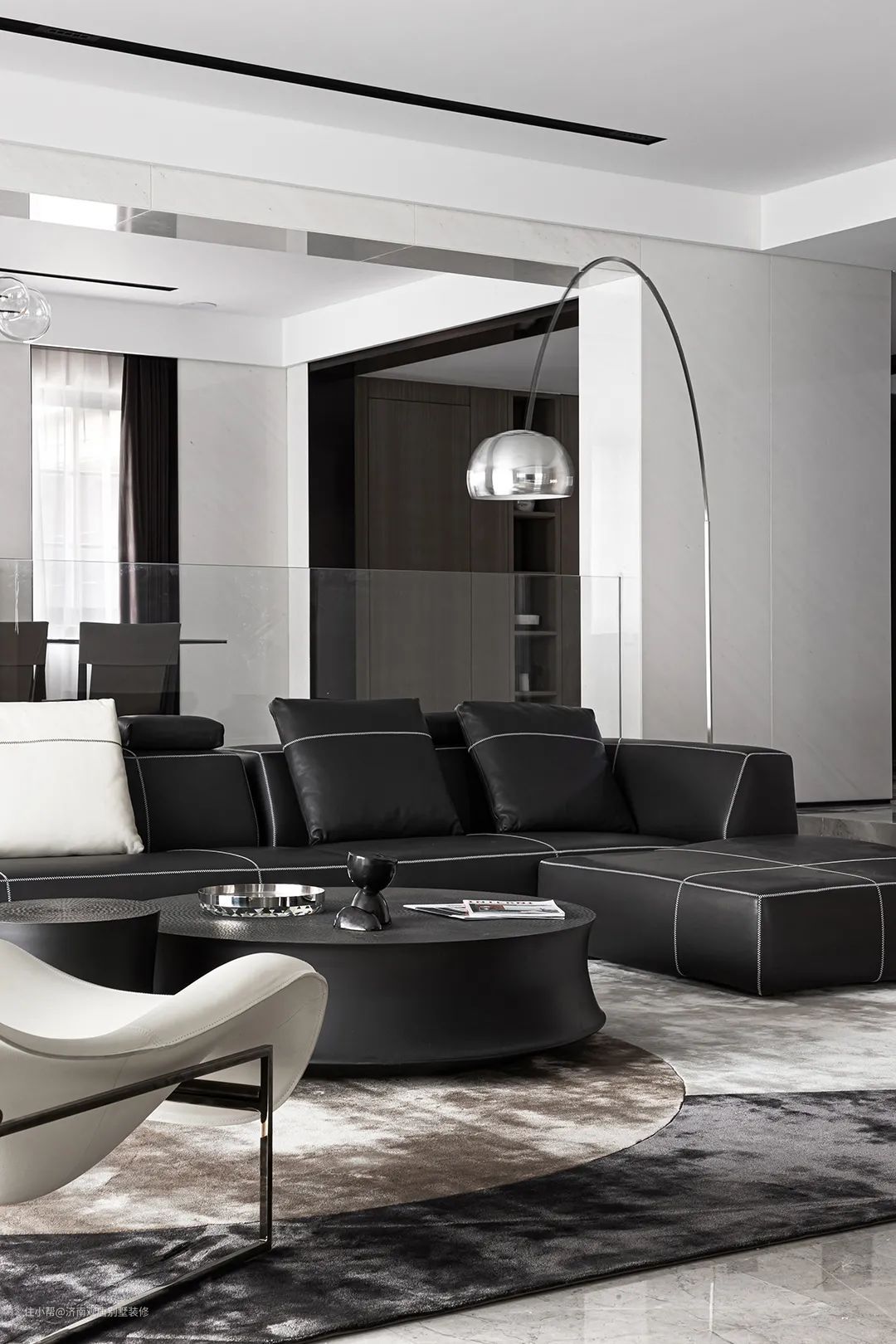 这个1000平米的独栋大宅等设计中,设计师试图去探讨,人会以何种方式从空间中汲取精神力量,以获得心灵的安稳,它无需言语、忘却形式、潜藏着宁静,与自然和谐共栖,以抵御一切消极因素。