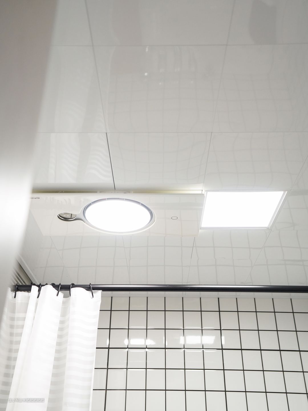 我把它安装在了浴缸区域外天花板比较中心的位置,避免了暖风直接吹向人体,也最大限度的保证每个角落都可以被照顾到。