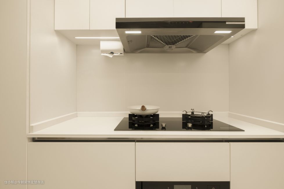 橱柜、墙体和地面,大面积采用白色系设计,配合软膜天花提亮了整个空间。合理的厨房功能分区,也从视觉上延展了空间感受。爱研究美食的外婆可以在这里享受着空间带来的愉悦,为孙女搭配合理的膳食。