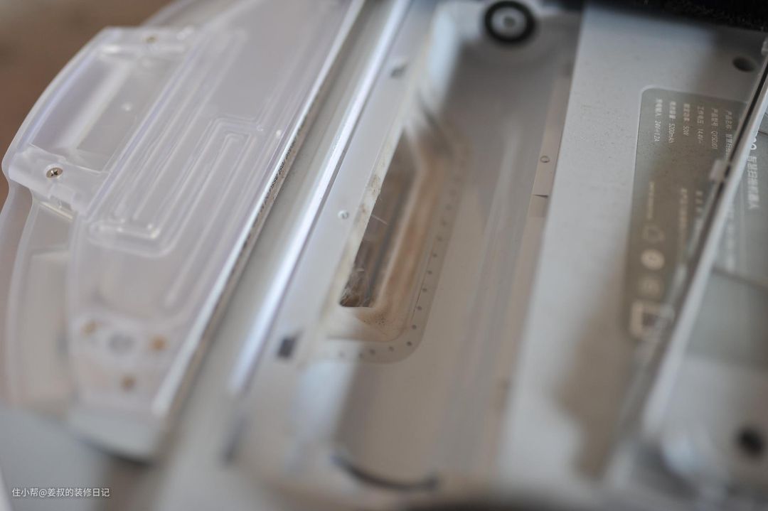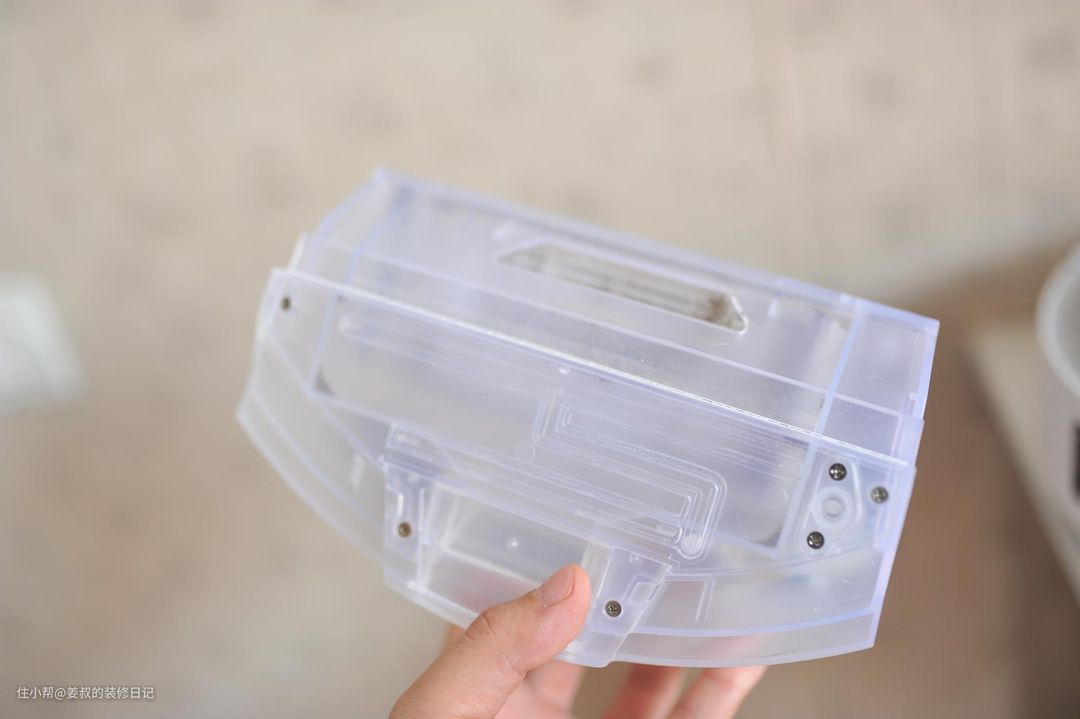 最后要说的就是它独特的电控集尘水箱和拖地模块。首先说明下,如果你打算购买扫拖一体机器人,一定要选择电控水箱,而不是重力水箱,在拖地的时候,两种水箱的拖地效果差别还是很大的,电控水箱控制出水量更为灵活,除此之外,这款机器人的电控水箱容量达到了250ml,对于日常拖地来说,完全够用。