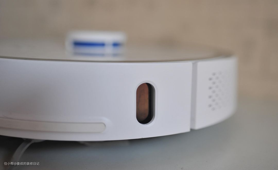 在机器人侧面包含了红外感应模块,可以让机器人能够快速找到基站,前端还带有专门的防撞条,即便碰到墙面也不会刮花机器人机身,这点好给个好评,我之前买的基本都不带防撞条。