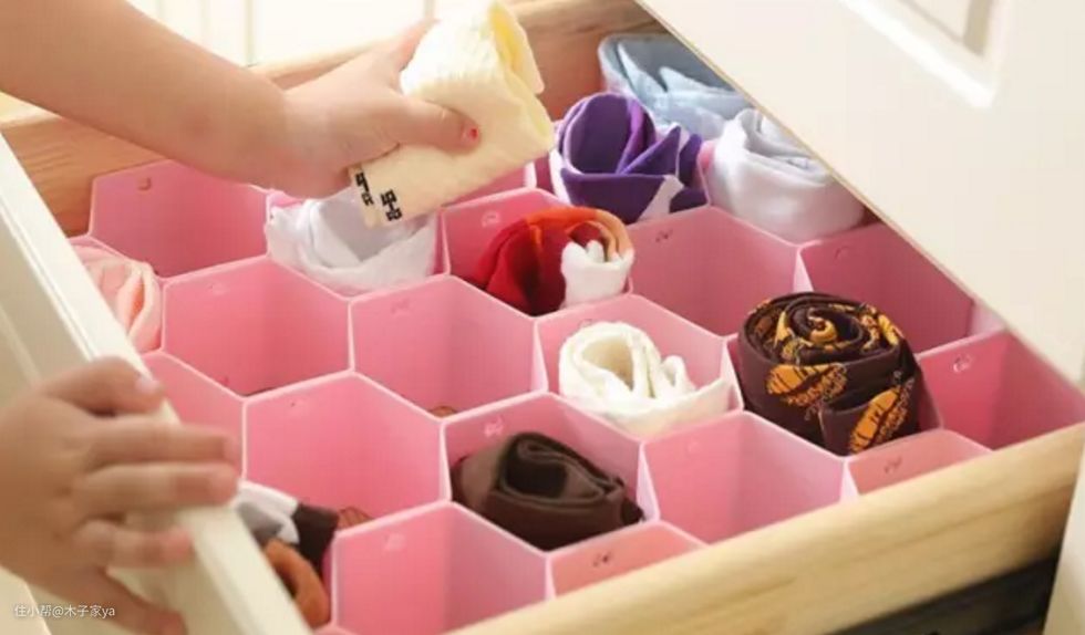 在抽屉里翻找内衣裤袜子不方便,其实可以网上购买塑料或布艺的格子抽,很好的分类你的物品。