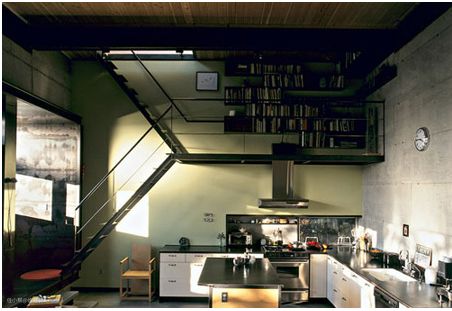 这款纯钢筋材质打造的楼梯散发出工厂改造而来的LOFT味道,因钢筋本身的强劲的牢固度完全可以承受中间新的平台,自然的为空间增加了一个休息区,在这里看看书,聊聊人生,感觉真的非常休闲惬意。