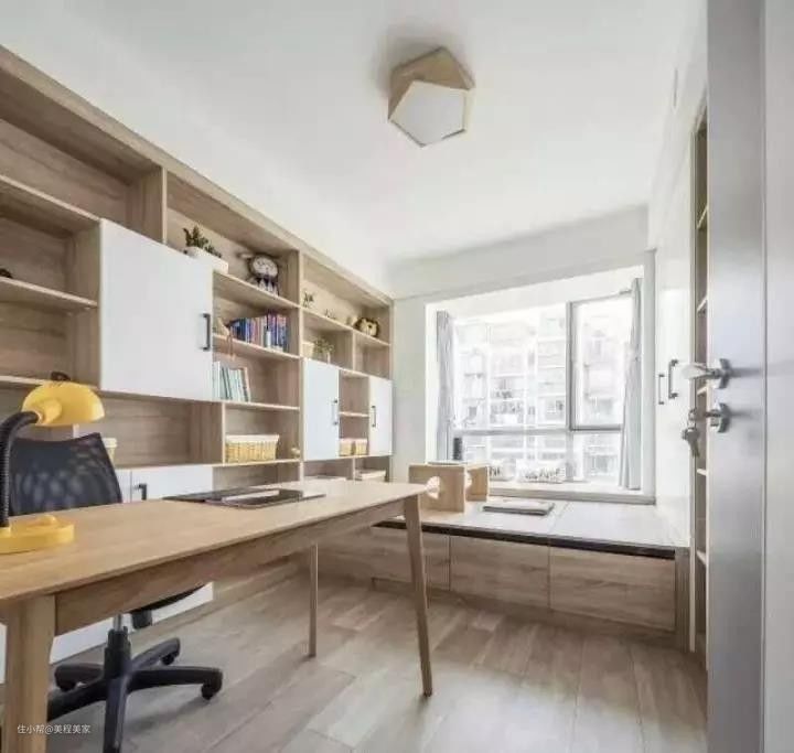 靠窗位置作为独立的读书一角也是极其惬意的,闲暇时刻,坐在窗边看看书,感觉整个人都得到了升华。底部或者左右两侧隔成几个收纳空间,收纳杂物很强大哦,家里宽敞又明亮~