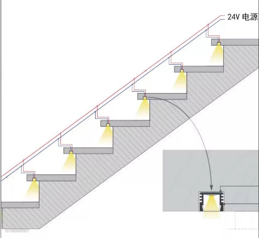 楼梯踏步线性灯安装: