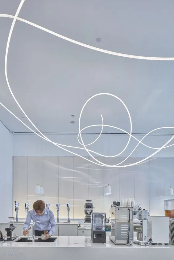 线性灯在商业空间中的应用同样广泛,给人以明亮,韵律赋有节奏感,通过灯光能够轻松营造整体氛围,在空间设计中,光是一种必不可少的装饰元素。