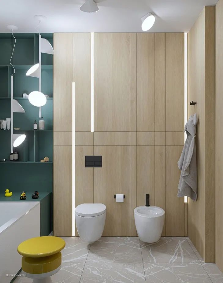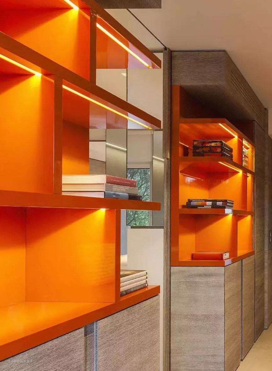 LED灯带安装在柜子内部增加光源,与层架的巧妙组合可以弱化空间的封闭围合感,充分渲染了精致时尚的室内氛围。