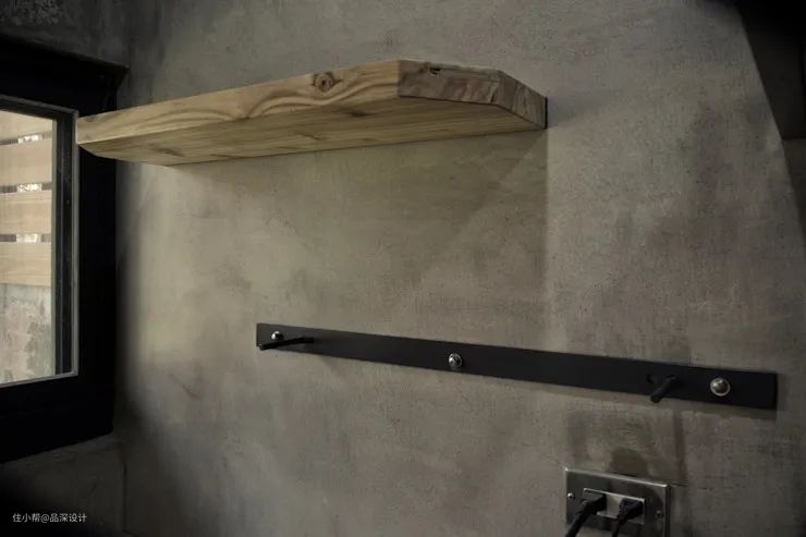 当墙面完成面足够时,可以通过在墙面上做钢架挑出,再封基层板贴木皮,这个方式具有承重力和稳固性,钢架在墙面上的固定点也隐藏于完成面之内。