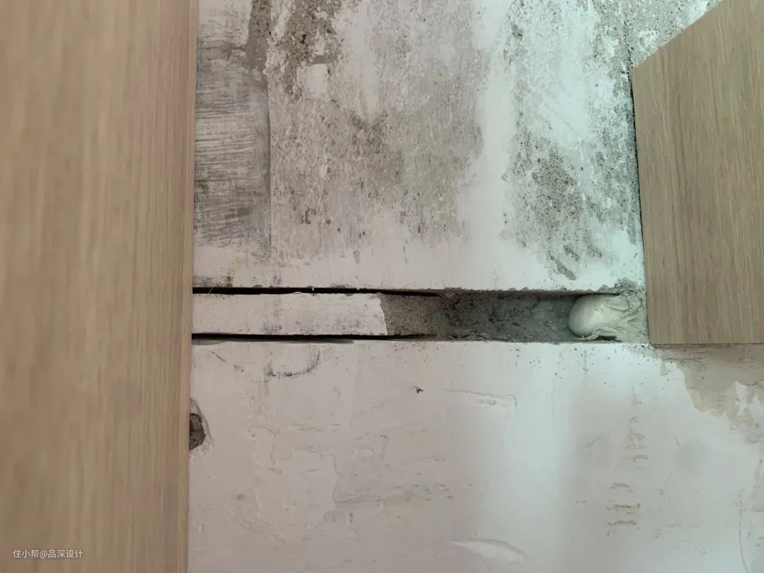 在实际的施工现场还有一种做法:将墙体开一条小槽,然后将层板卡在槽内用AB胶固定,在层板与墙面固定牢固之后做木饰面。