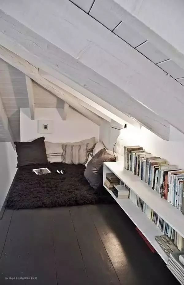 或者简单一点,铺张地毯,嵌入书架,一个人的空间安静无忧。