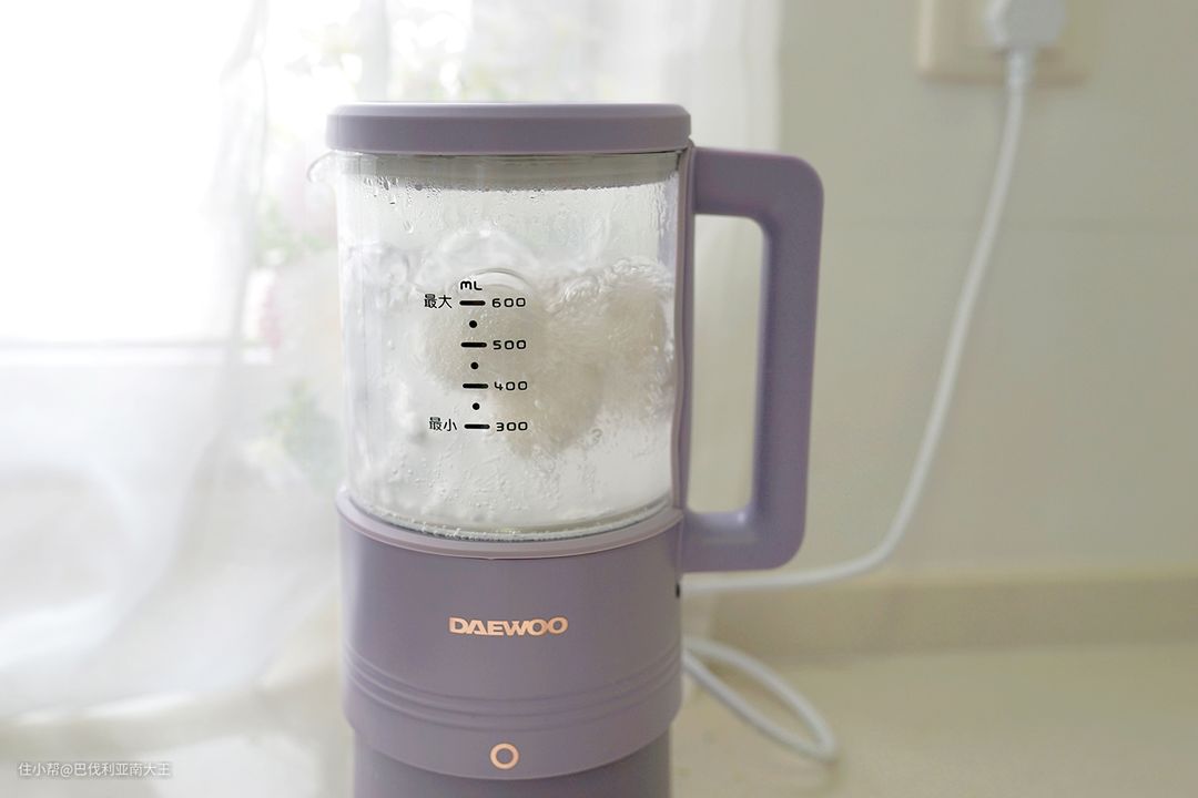 另外体积非常小巧,女生使用特别轻便,不会像传统大型破壁机那样多拿会儿手就酸了。两个壶的最大容量都是600ml,在迷你破壁机和传统破壁机间取了很好的平衡,三口之家用起来刚刚好。