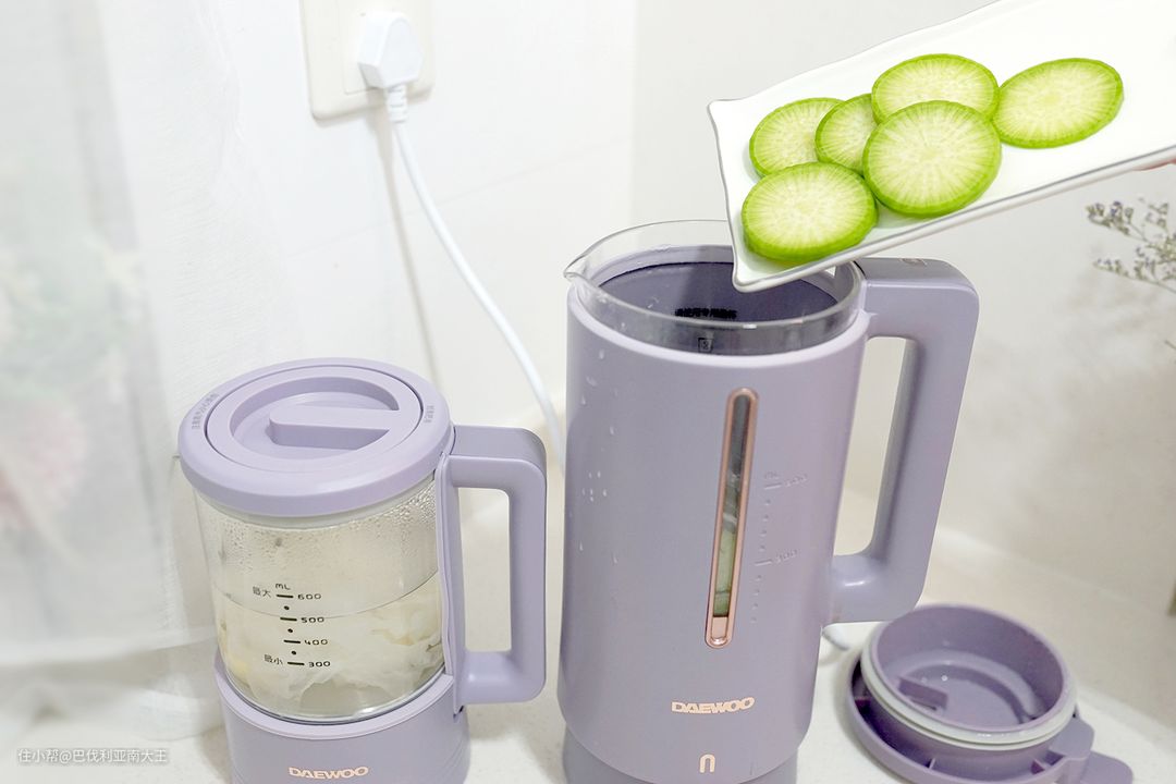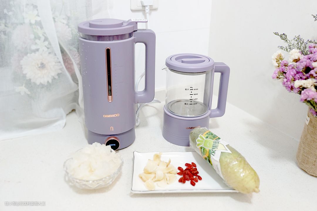 以下食谱使用的都是大宇轻养破壁机,它是“一机双杯”的设计,小巧的底座上既能放破壁机,又能放养生壶,做一些连煮带破的汤羹之类就很方便,奶昔、果茶这些更是一机搞定,而且可分离的底座在后期清洗时超方便的!文末会附上简单的产品细节介绍,大家耐心往下看吧~