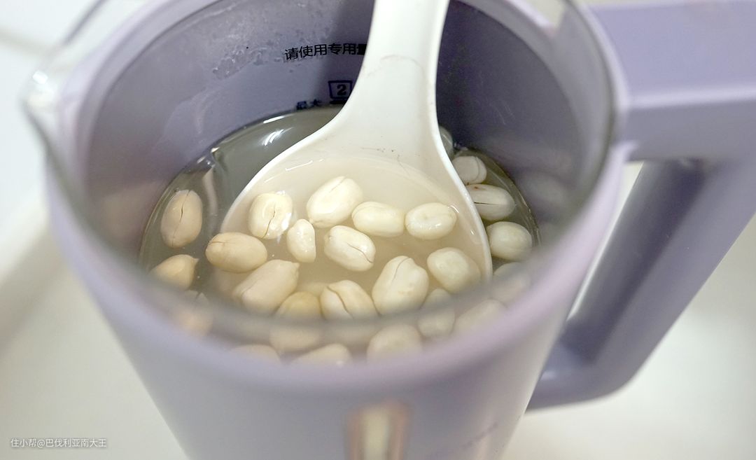 1. 花生、糯米提前泡水3小时,然后把泡好的花生去皮,水泡之后皮变的很软,轻轻一撕就开啦~