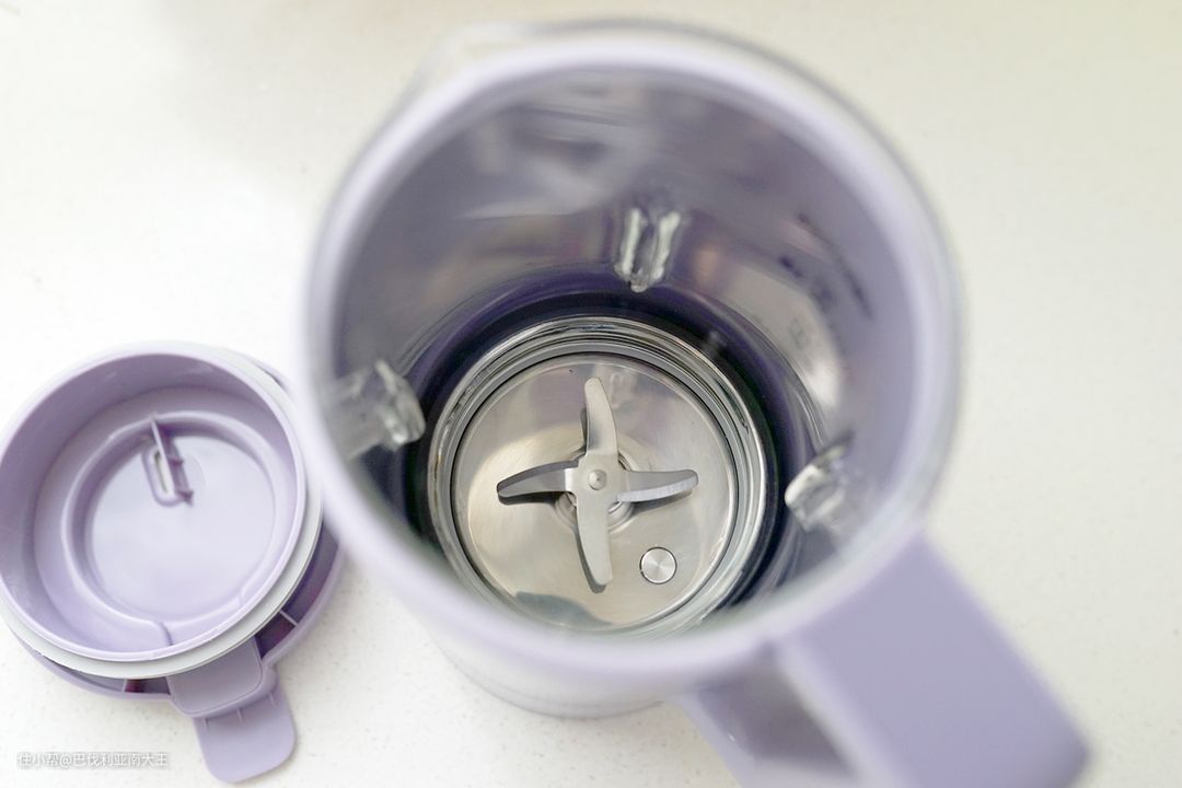 看下破壁机的内部构造,除了有4叶一体精钢刀头,杯壁上还有四道凸起的加强筋结构,可以辅助破碎,加速搅拌效率。哦对了,它在运行时的声音也没那么大,一改楼主之前认为的破壁声音越大,力度就越强,食材就越细腻的错误想法!