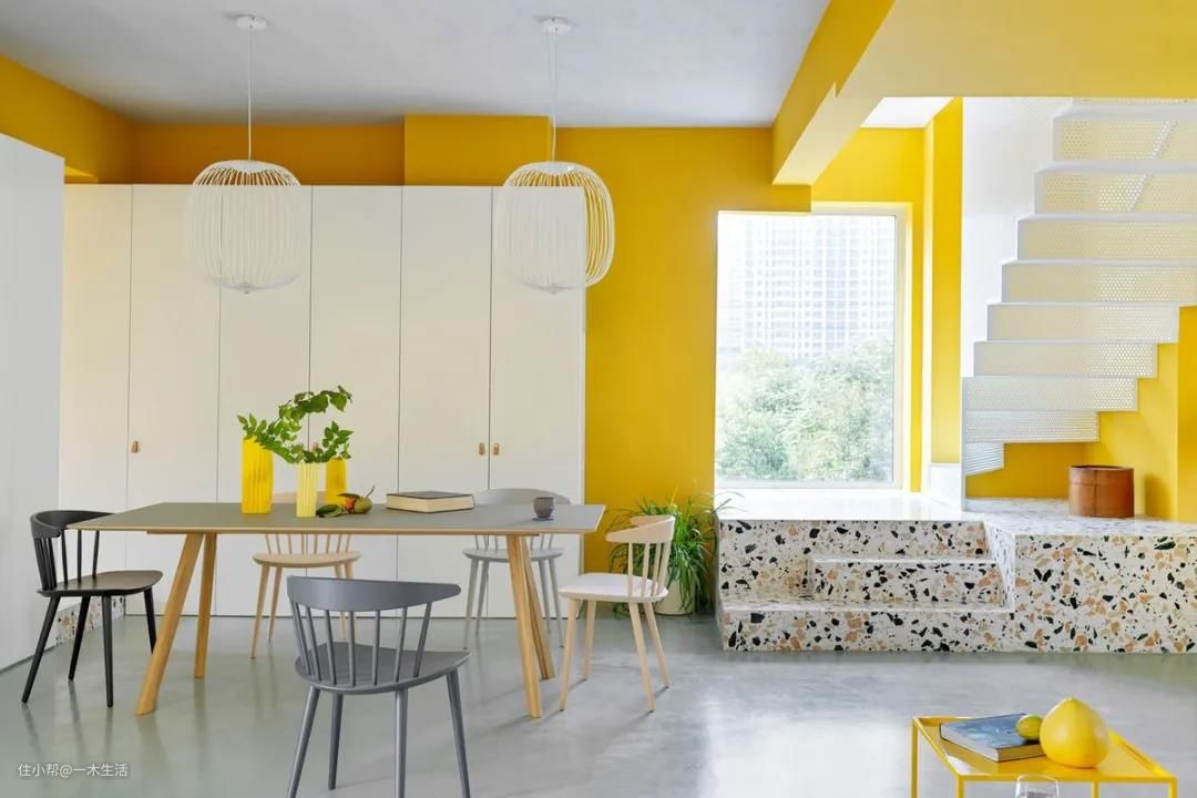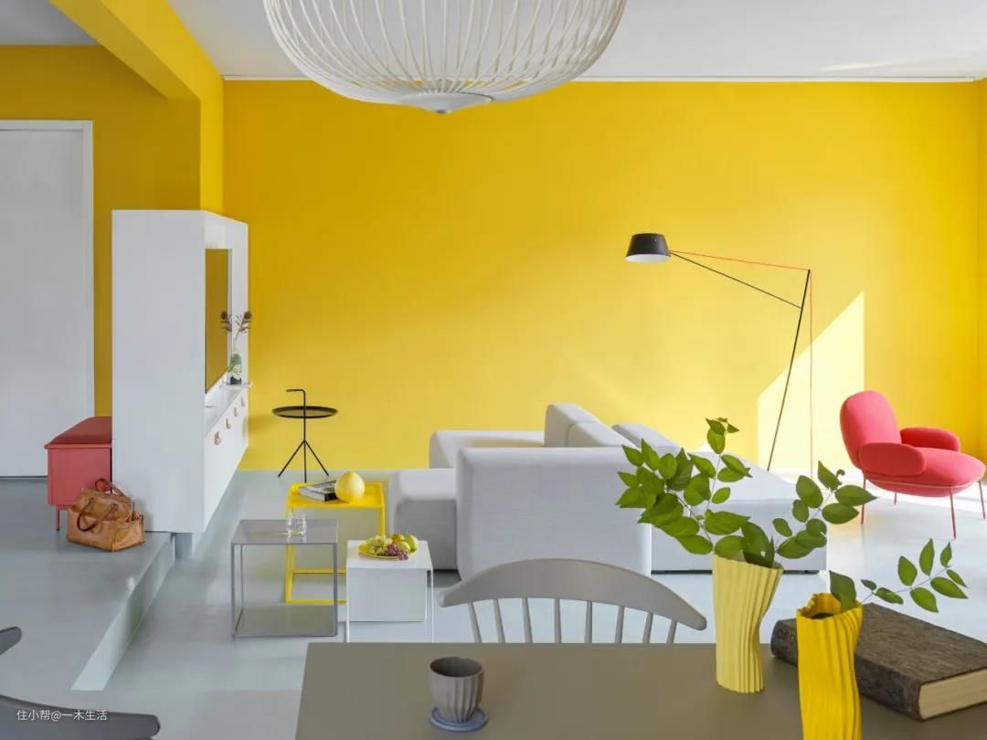 但在这里,一木还是要给大家提个醒~高级配色、宜少不宜多!毕竟色彩搭配并不是自己喜欢的颜色都得用上。无论明亮黄还是极致灰,在色彩搭配方面都相当挑剔,在大面积使用这两个颜色时,其他色彩的融入则需要更加单一,所以一木建议大家尽量选择白色或浅同色系进行搭配哟~