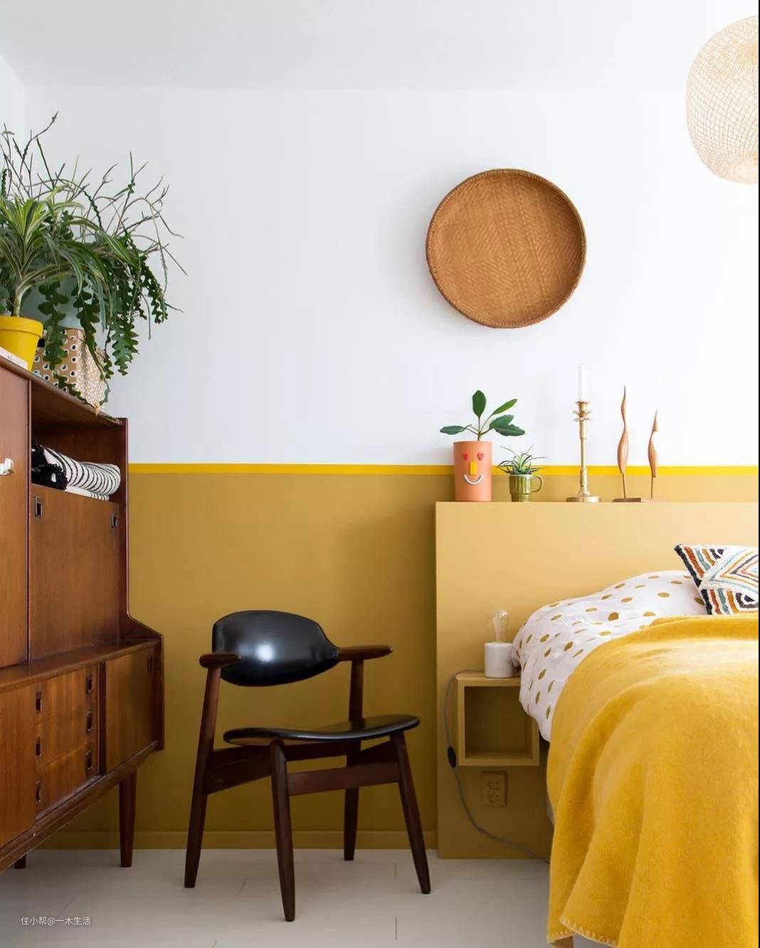 看惯了大白墙的你,对于彩色墙是不是也有怦然心动的感觉呢?在我看来,大白墙的确普适又百搭,但怎么说呢,如果整体软装没做好,那白墙的存在则会使空间更显寡淡无味。所以,不妨大胆一些,打造一面高饱和的明亮黄色墙,来唤起整个家的生机与活力。