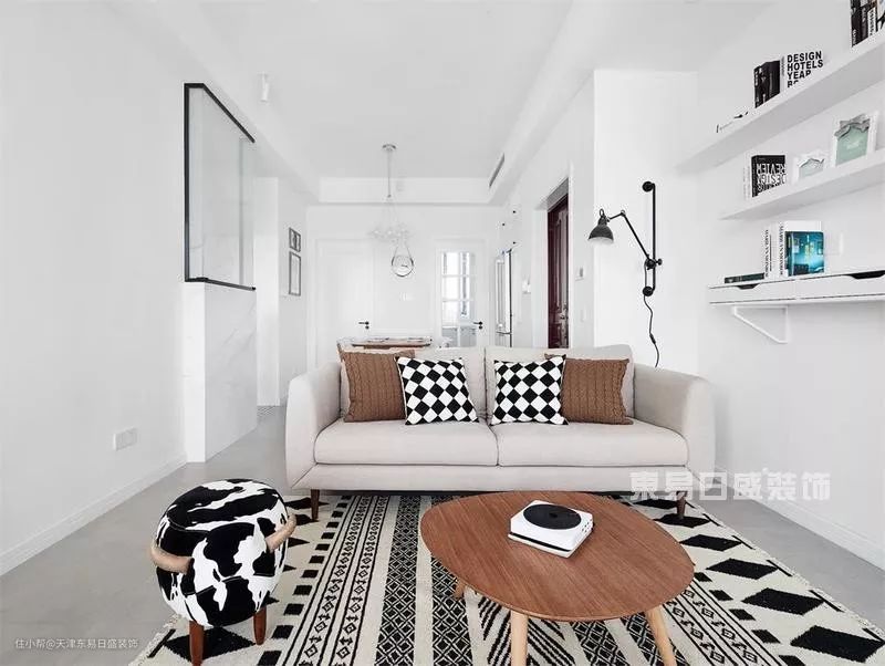 白色小圆茶几简洁干净。小体积方便移动。本身客厅就不大,还要塞下一个大茶几,一下子占了好多空间,把茶几换成一个小点的,功能性不减反而看起来更加精致。