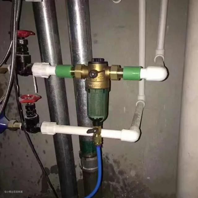 不知道有没有业主遇到过这个问题,装修的时候想把前置过滤器装到厨房里边,但是开发商已经把水管引过厨房和卫生间里了。