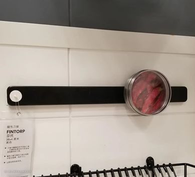 此处提名一下宜家的格兰代系列(这个系列就是主张让厨房台面无物)。里面有一组磁性调味瓶,可以吸附在金属表面(PS:透明盖子,贴心+1):