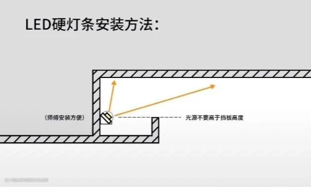 因为隐藏的光源非常低,建议遵循上面的方法。光源的比例是2-3倍。通常适合将隐藏式光源用于每米约6瓦的环境照明。