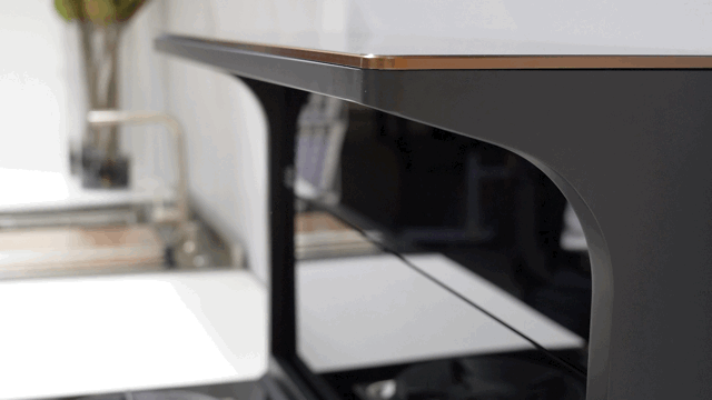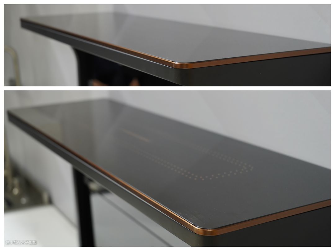 边框与旋钮等细节搭配的玫瑰金配色更让整体格调上升了一个档次。钢琴式按键的触摸也非常灵敏,旋钮的阻尼也十分有质感。