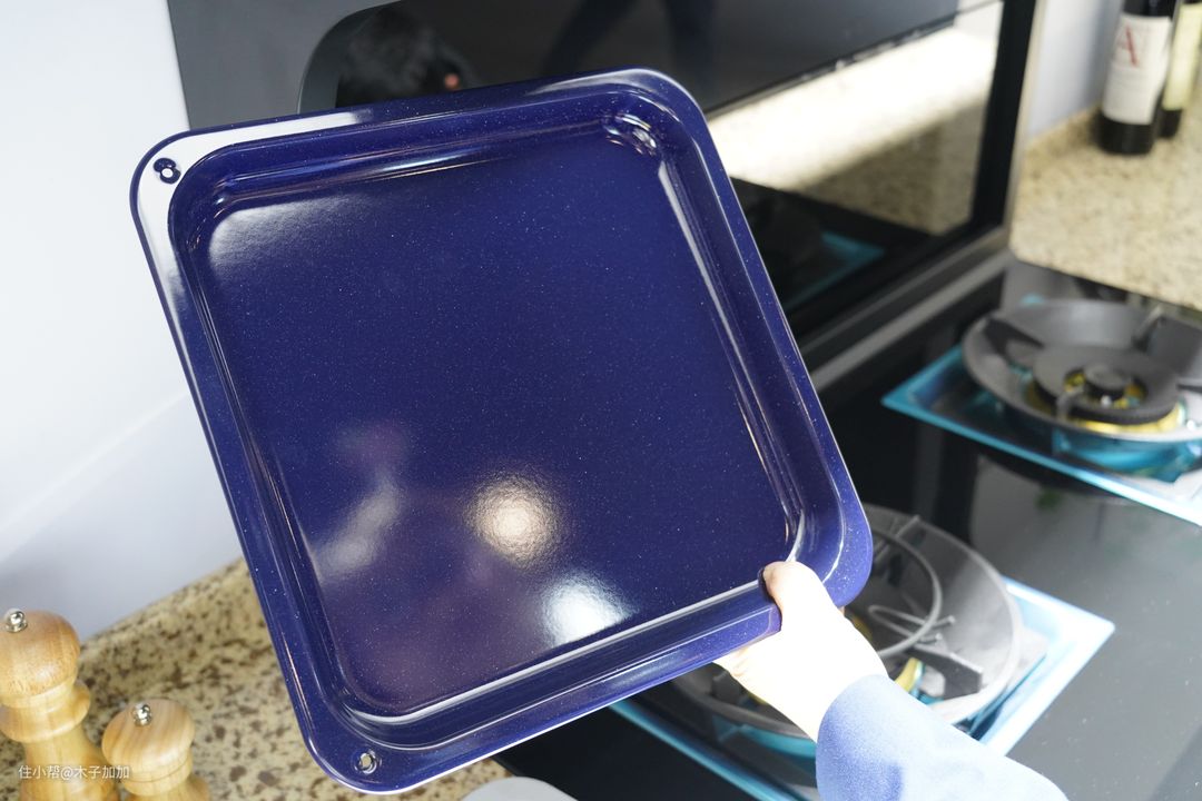 它的内胆创新采用了意大利卡罗比亚蓝色星彩搪瓷,与附带的烤盘表面为同一材质,听现场工程师说这种技术可以提供更有效的内部热传导。